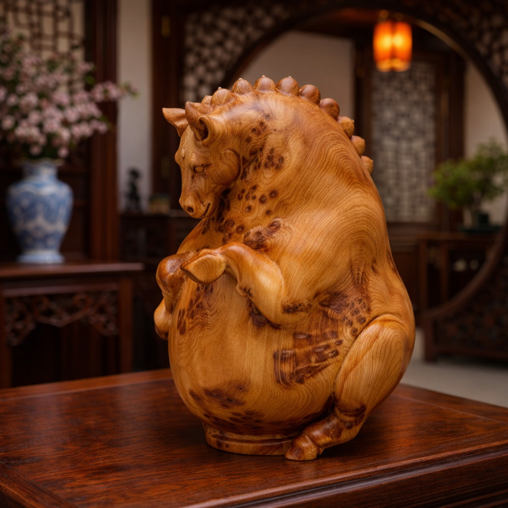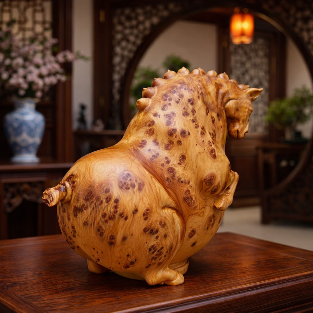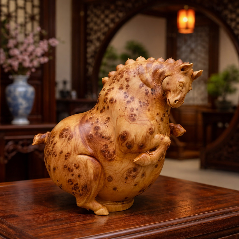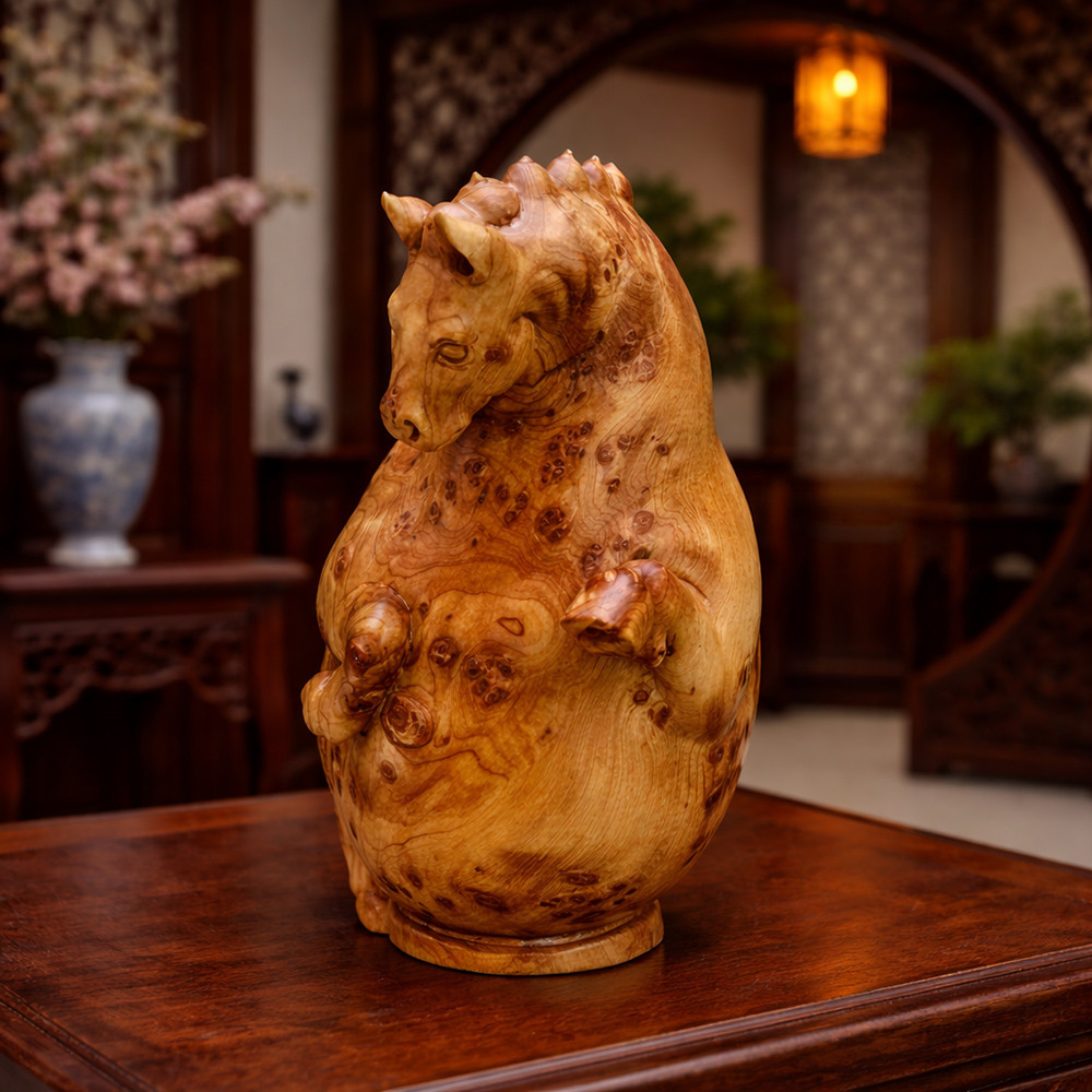 旺馬奔騰木雕