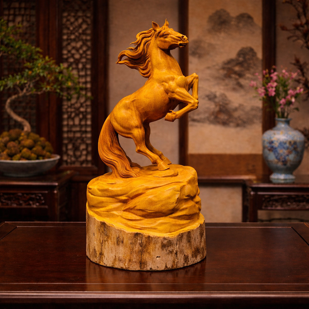 小葉黃楊木 駿馬 ·馬到成功木雕