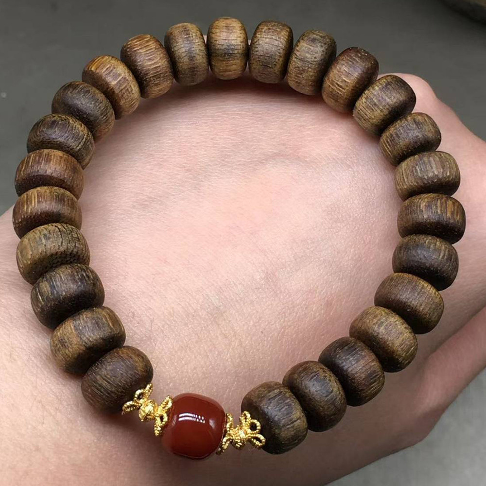 極品沼澤料“轉運珠”__達拉幹虎皮紋老料沉香手鍊