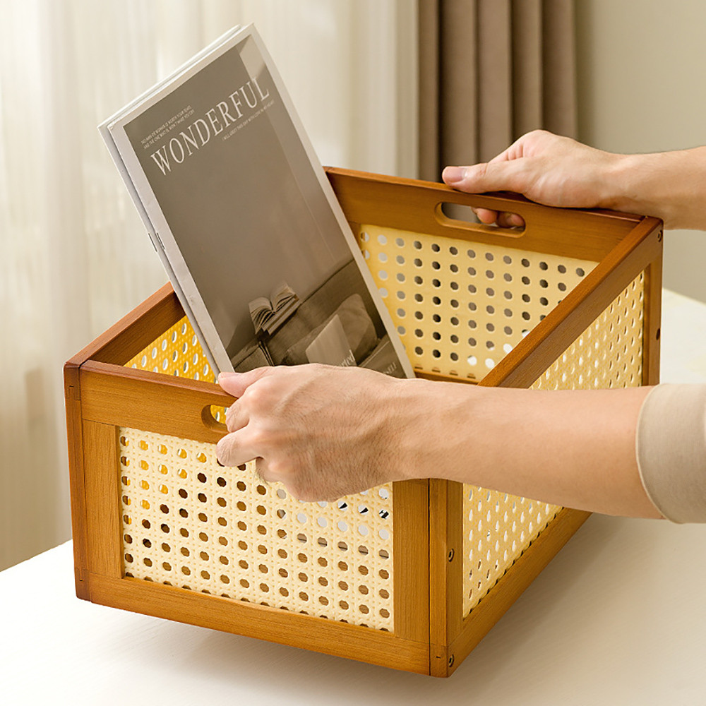 楠竹藤編收納籃桌面玩具書本收納籃零食化妝品收納整理收納盒籃子CD010D