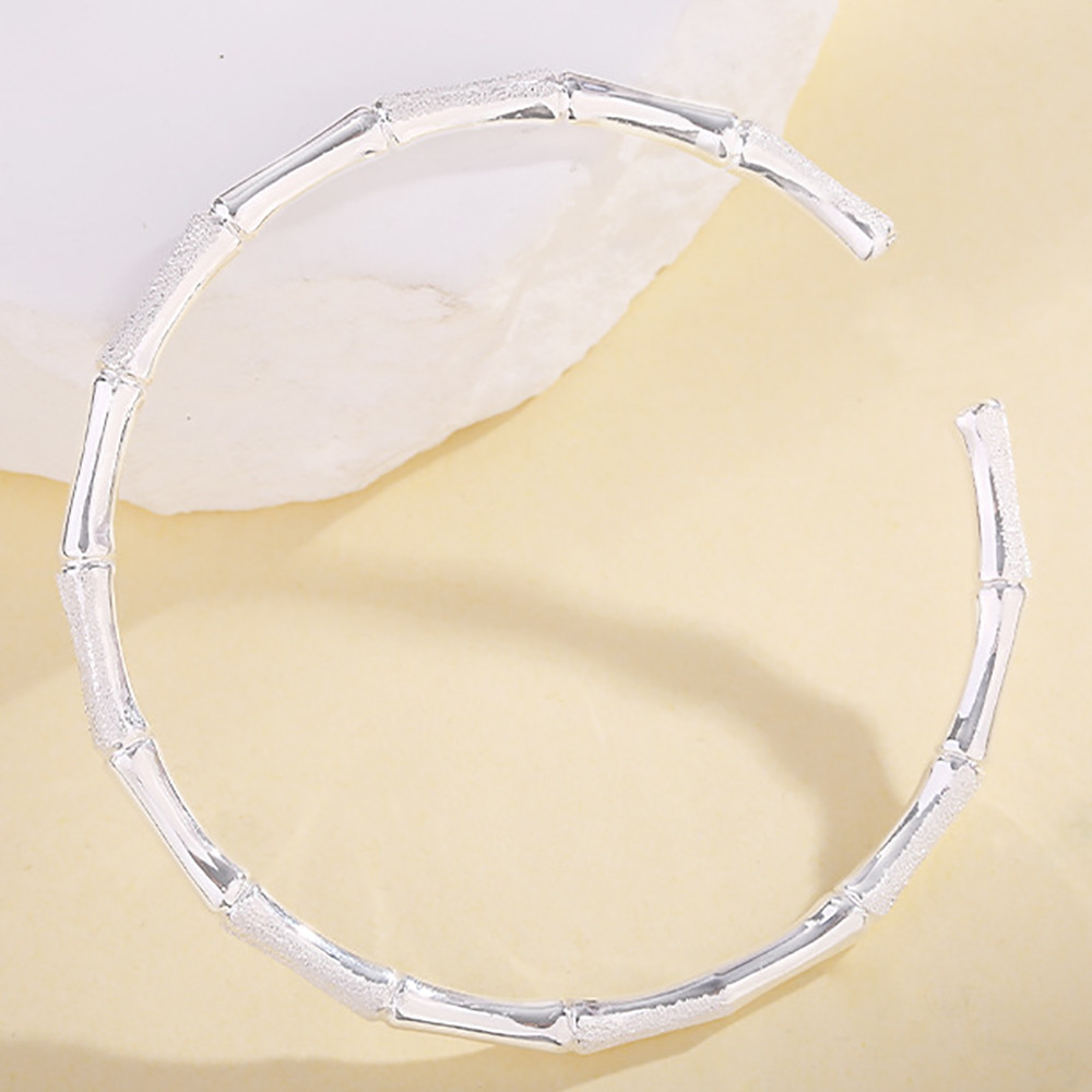 足銀999純銀手鐲女竹節噴沙實心開口時尚精緻手鐲女輕奢精緻高級簡約手鍊