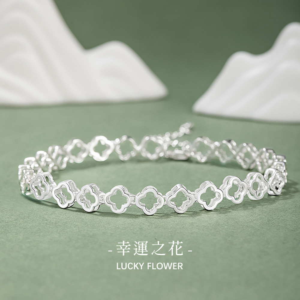 幸運四葉草足銀999花朵手環ins風輕奢款桃花手飾女輕奢精緻高級簡約手鍊
