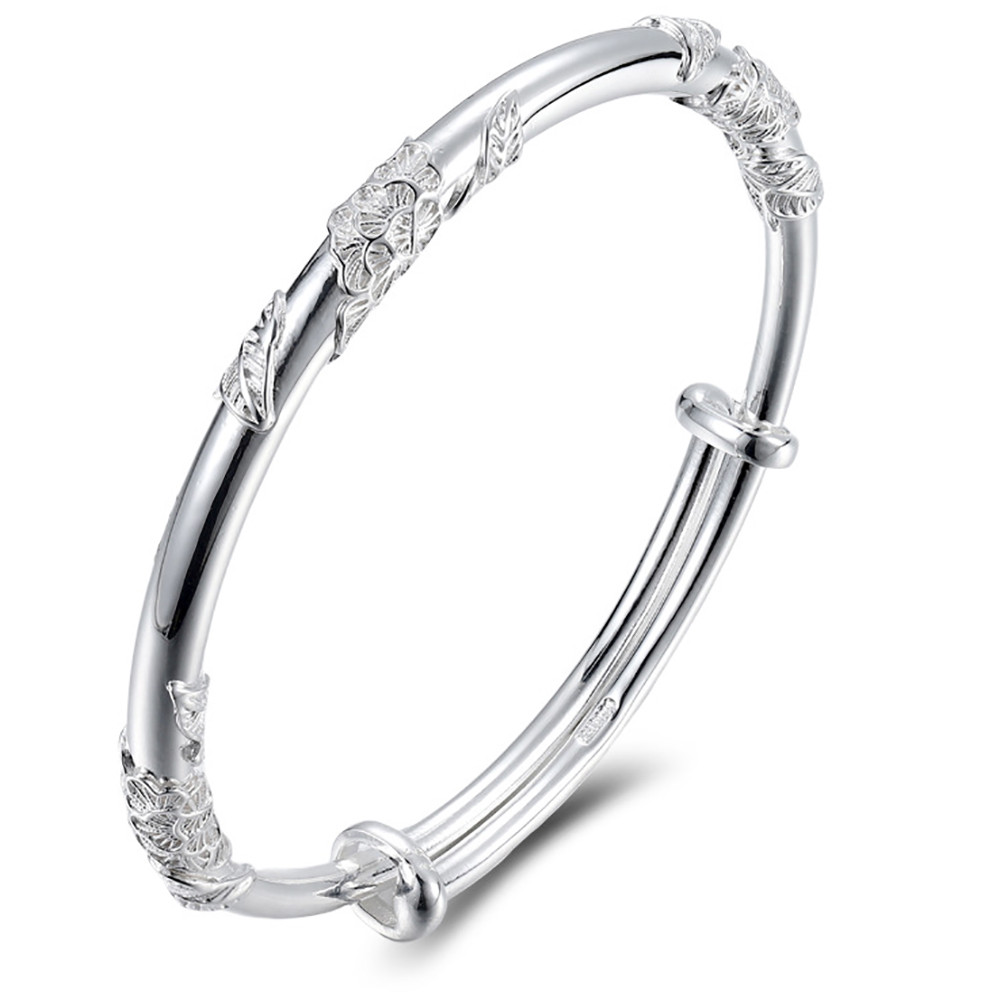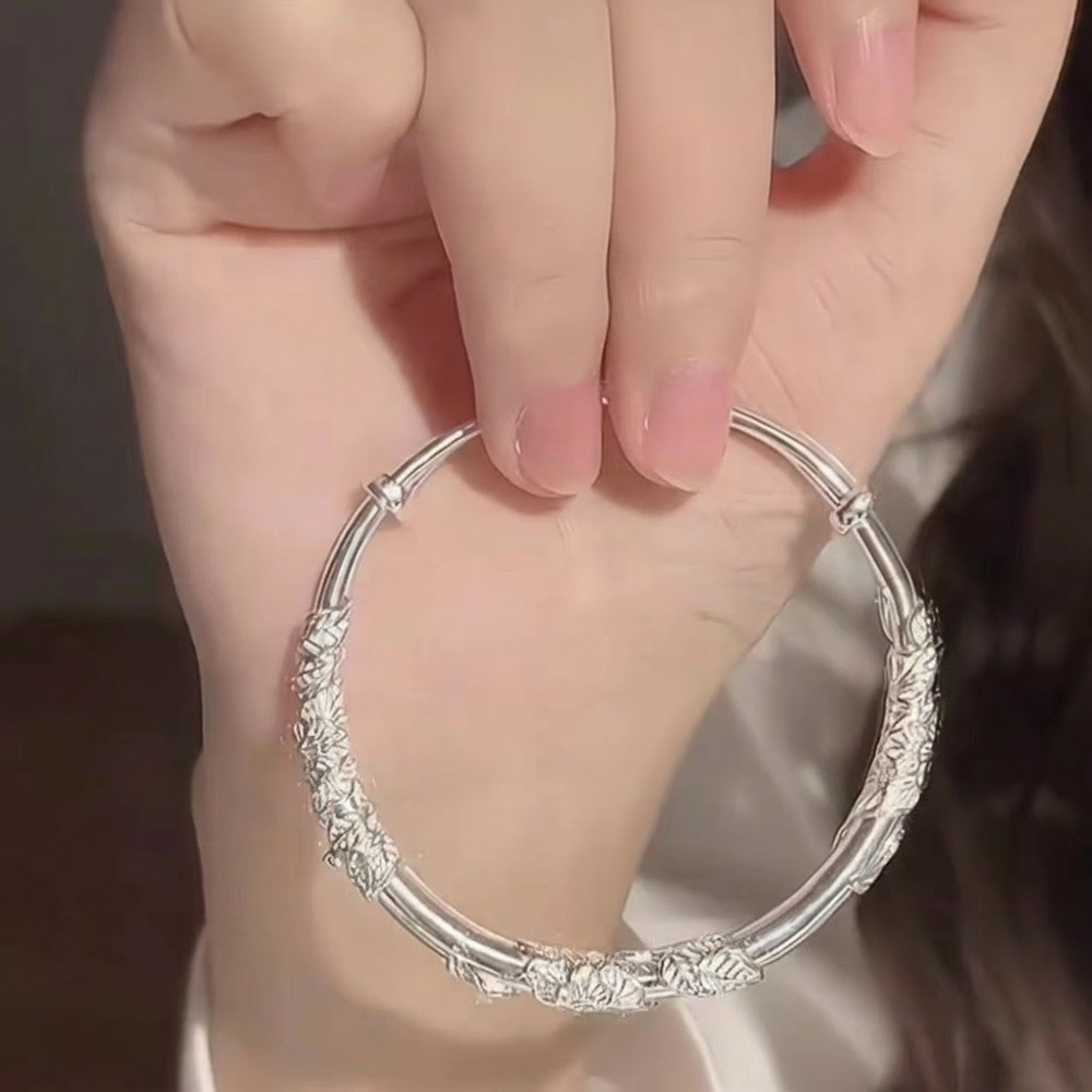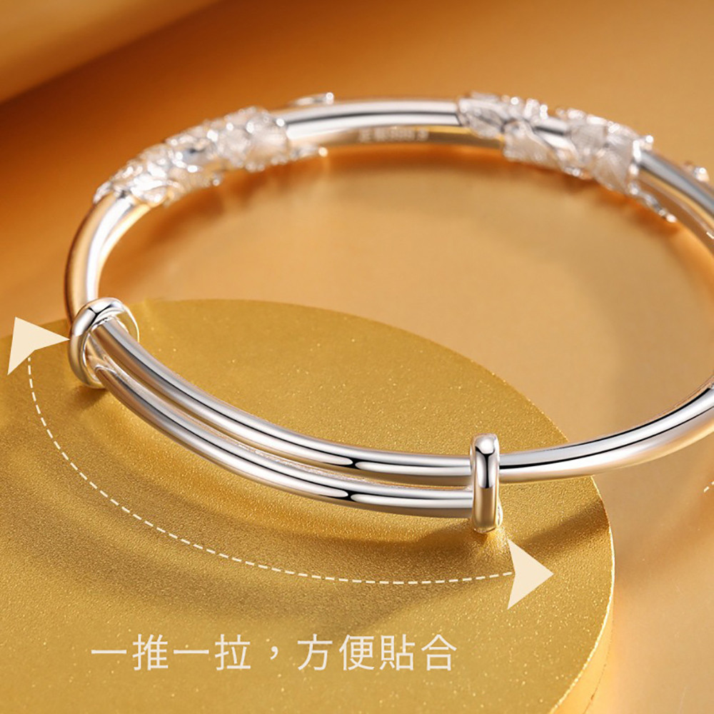 品名:牡丹繁花花絲足銀999純銀手鐲女輕奢精緻高級簡約手鍊