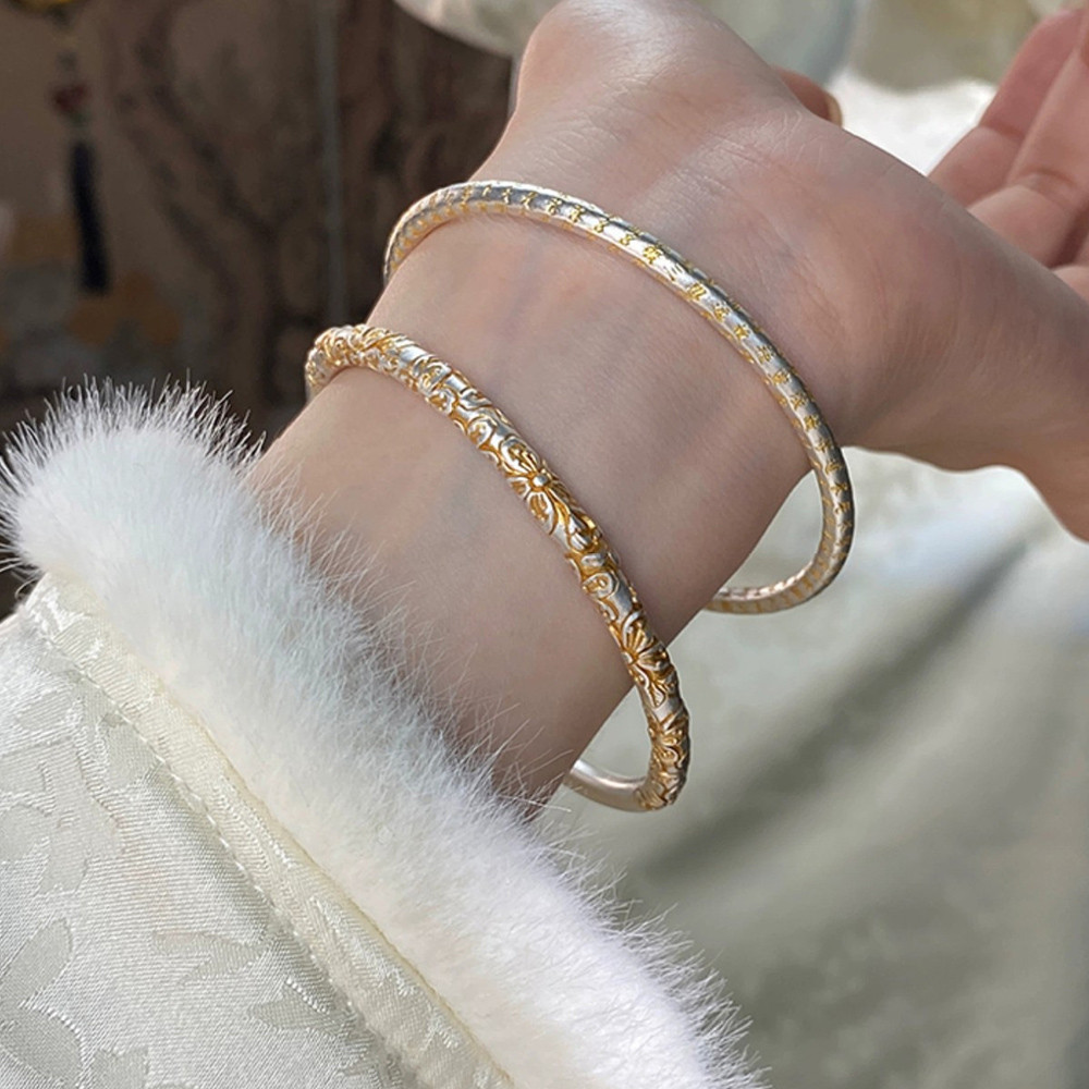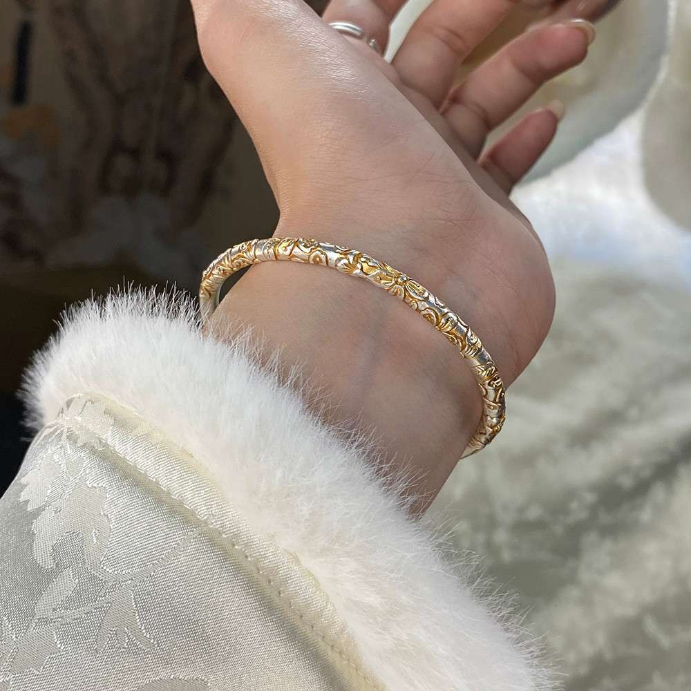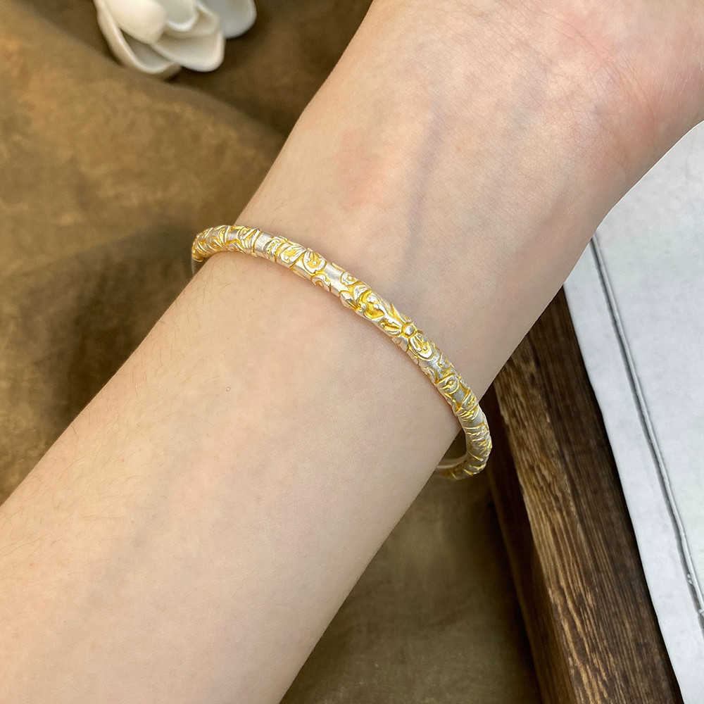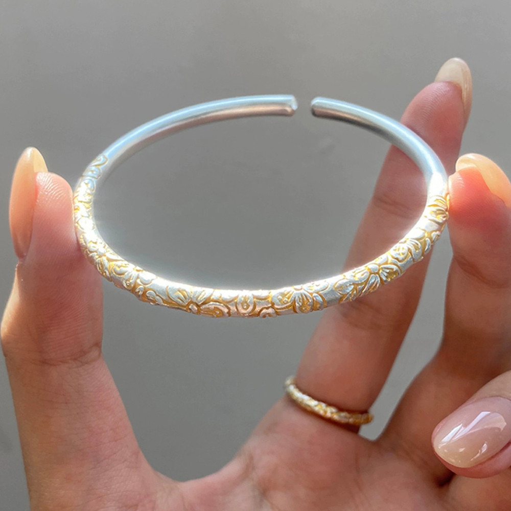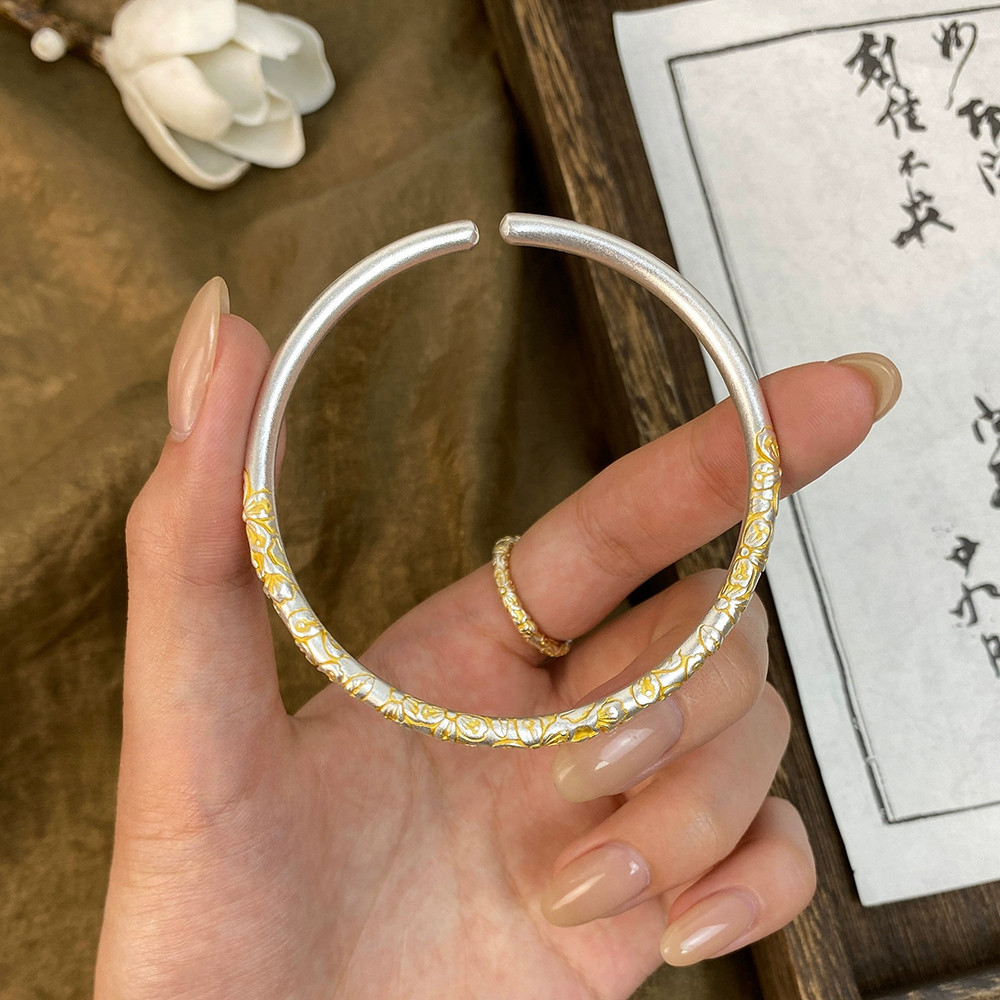 品名:純銀時尚金櫻花手鐲個性金色手工描金手鍊女輕奢精緻高級簡約手鍊