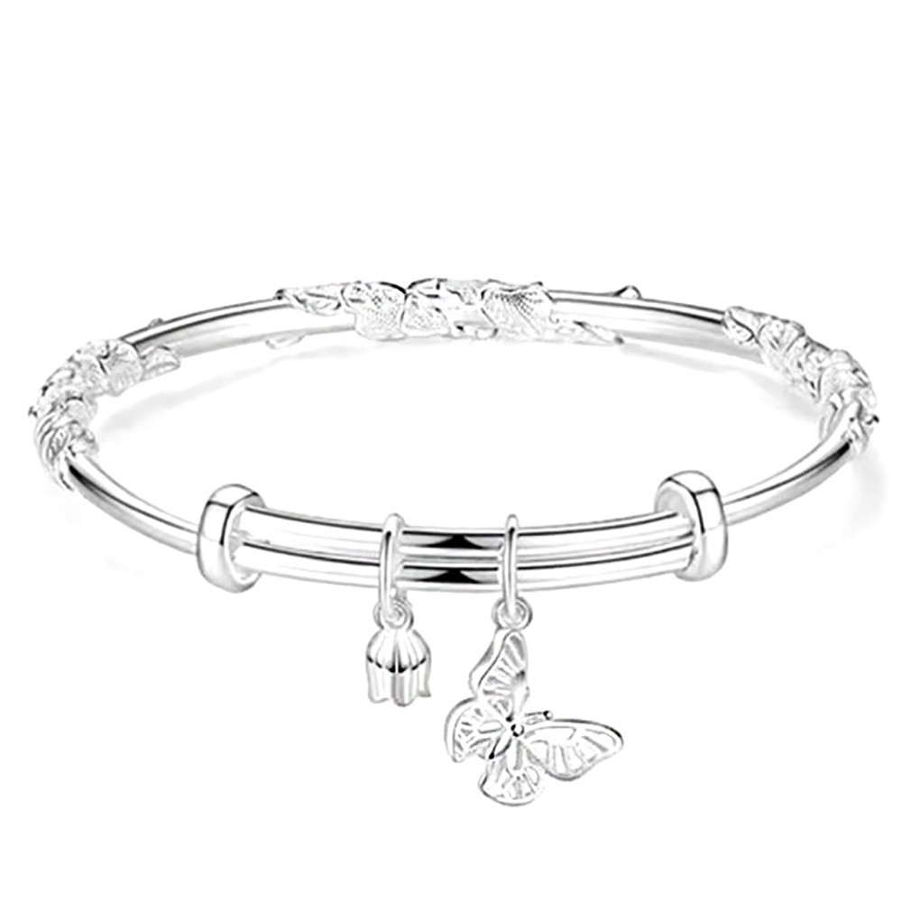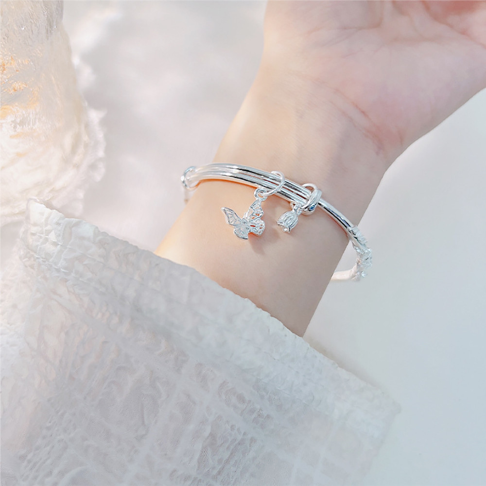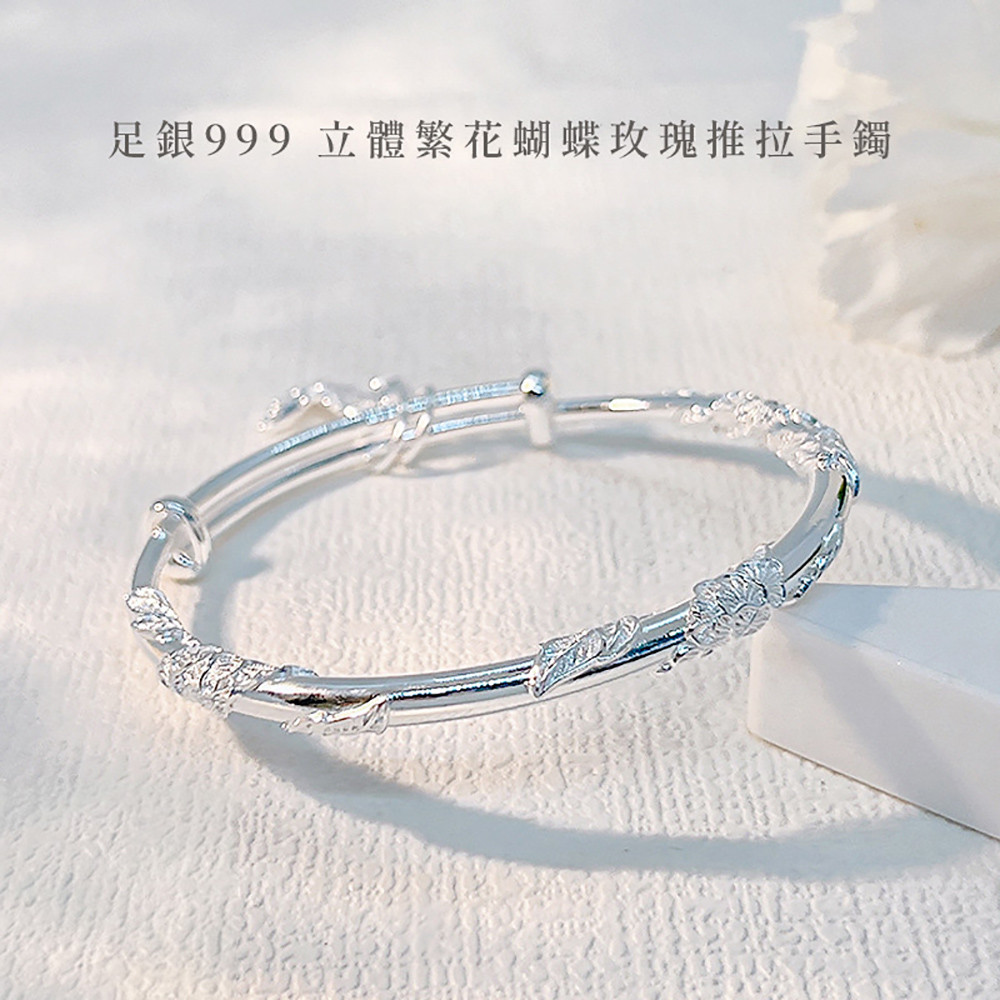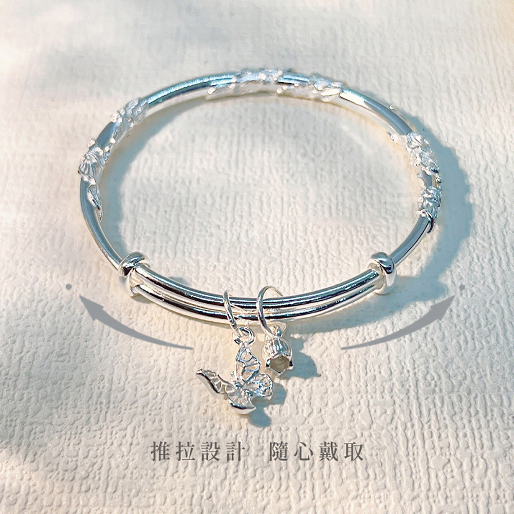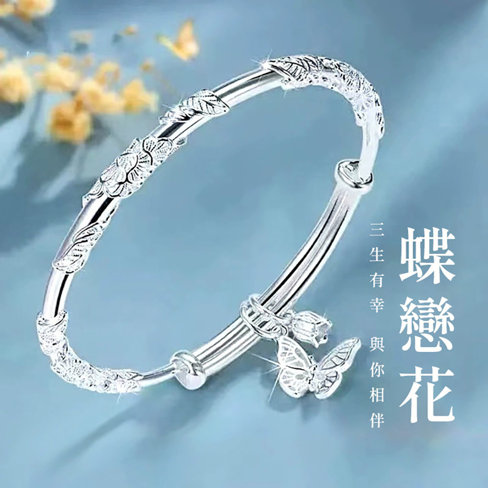 品名:繁花蝴蝶純銀手鐲女足銀999小眾鈴蘭花手鐲女輕奢精緻高級簡約手鍊