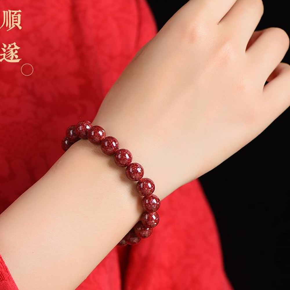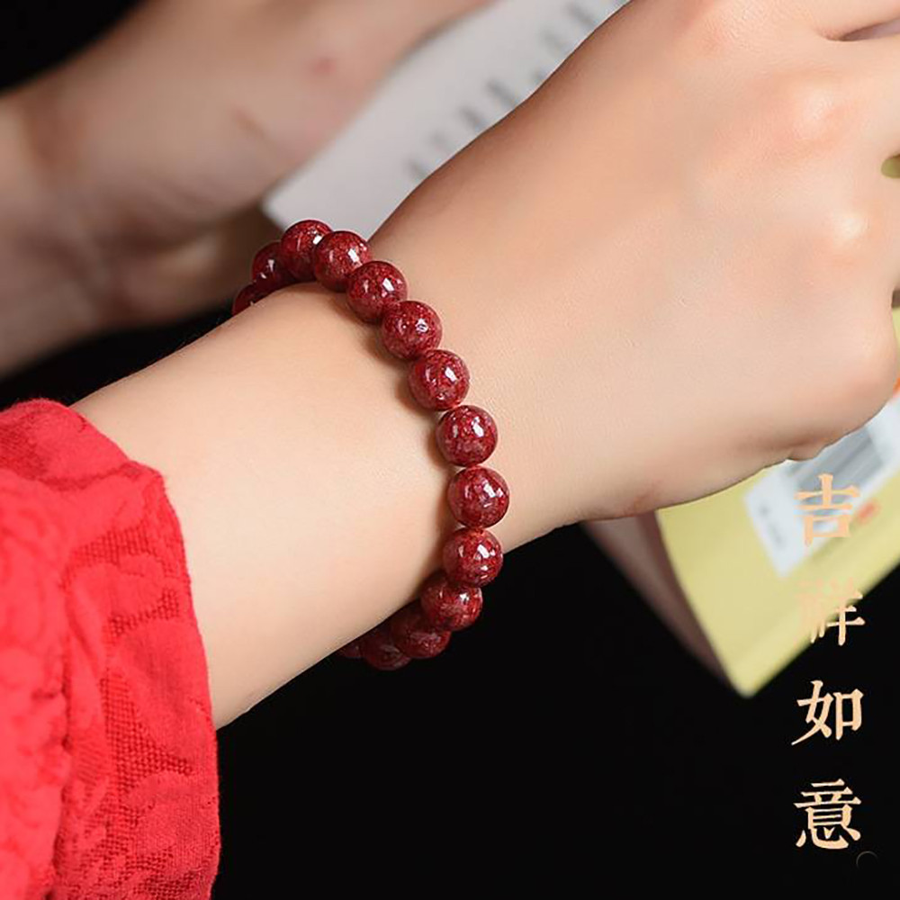 晶體朱砂手鏈晶體砂 手串原石高端朱砂男女款透光高