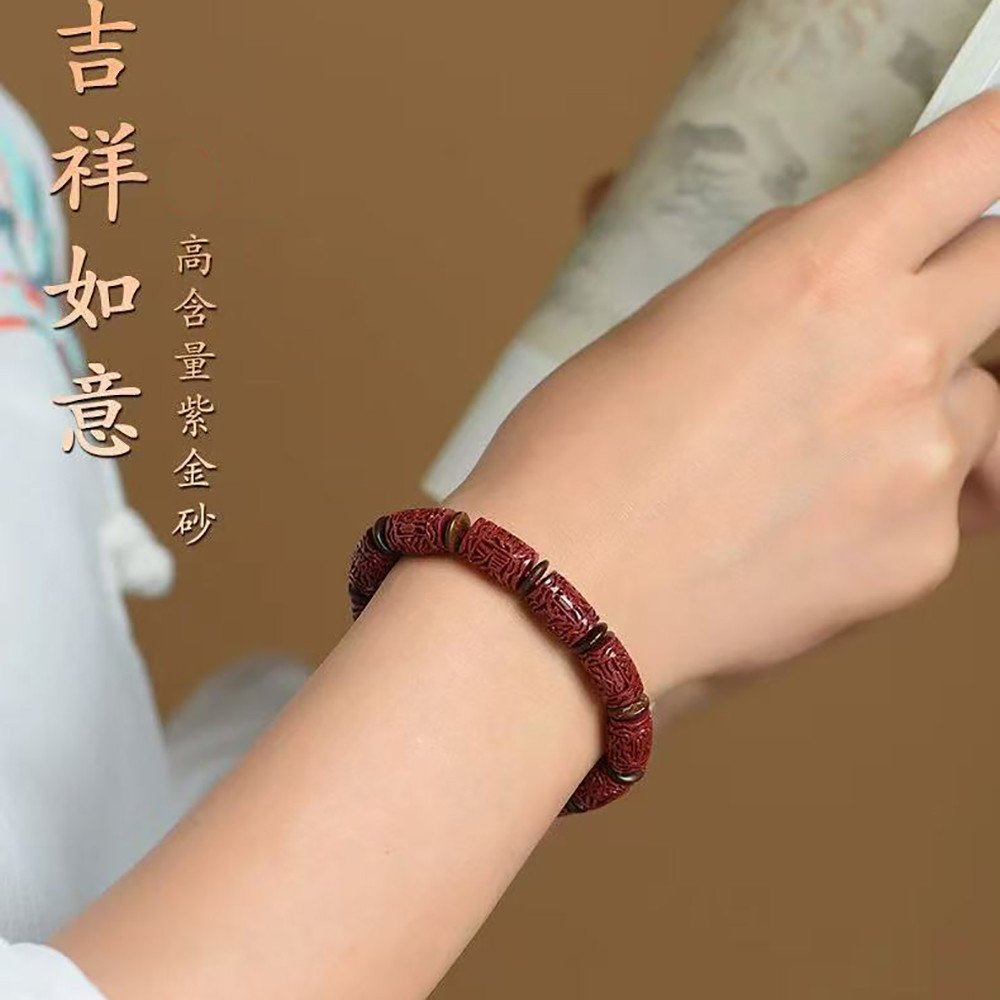 品名:財源滾滾硃砂手串紫金砂紅砂桶珠好運手串手鍊