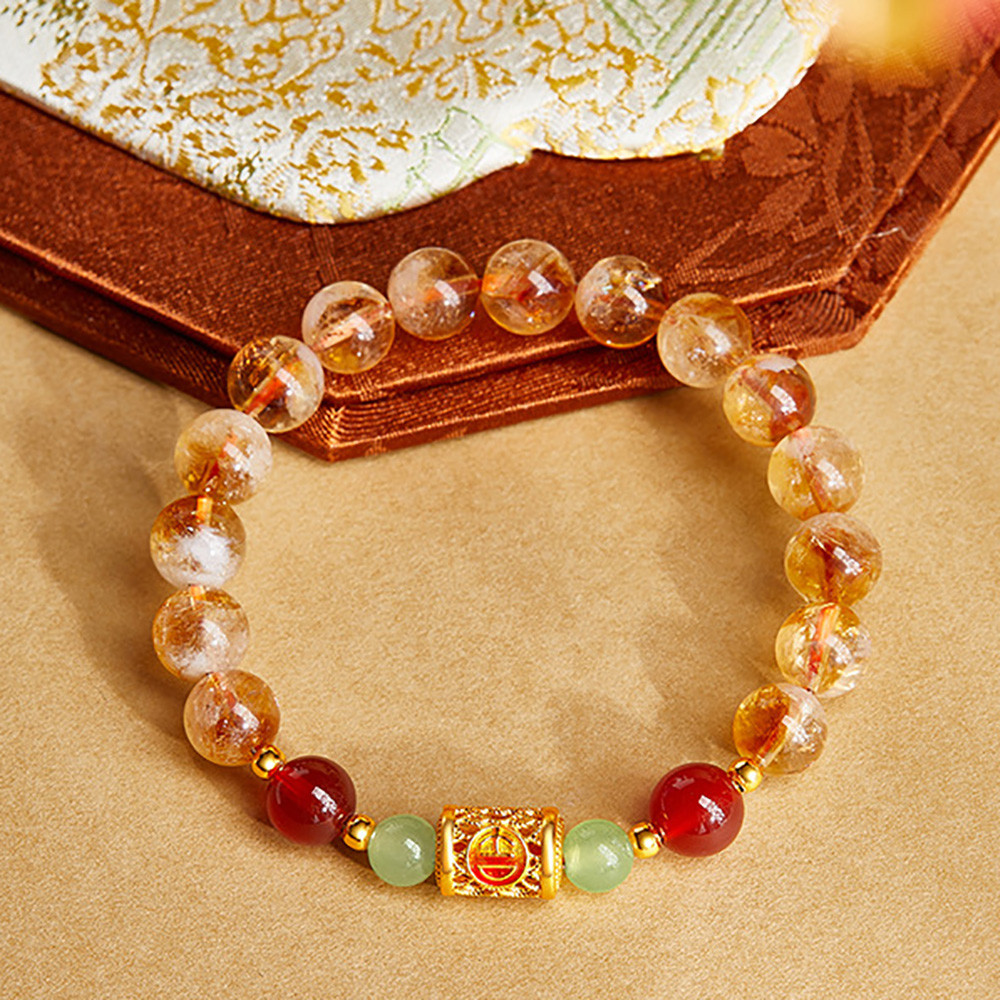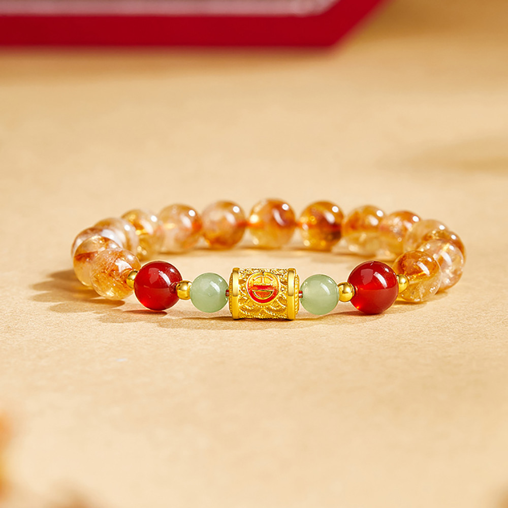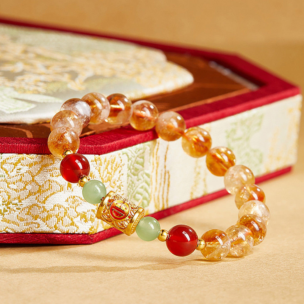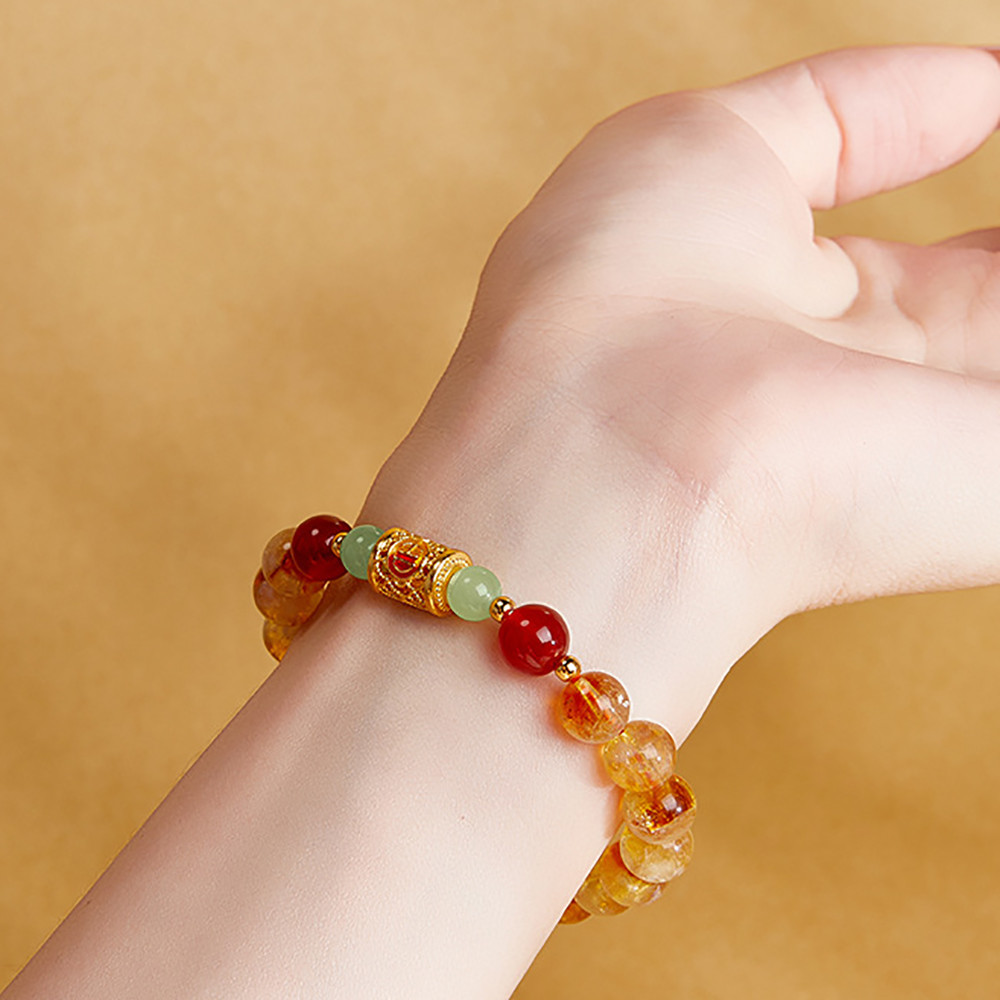 足銀999吉祥安康黃塔晶紅瑪瑙與田玉串珠女新高級感手鍊