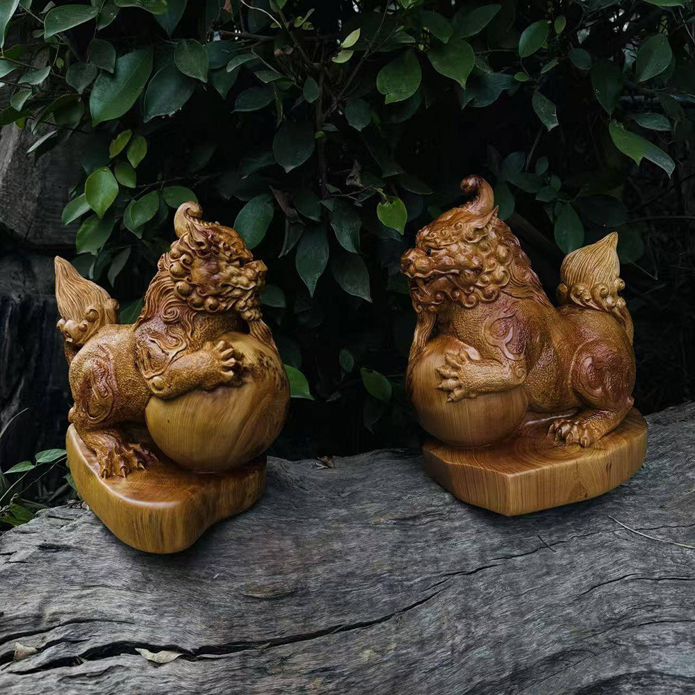 麒麟黃楊木藝術木雕對組
