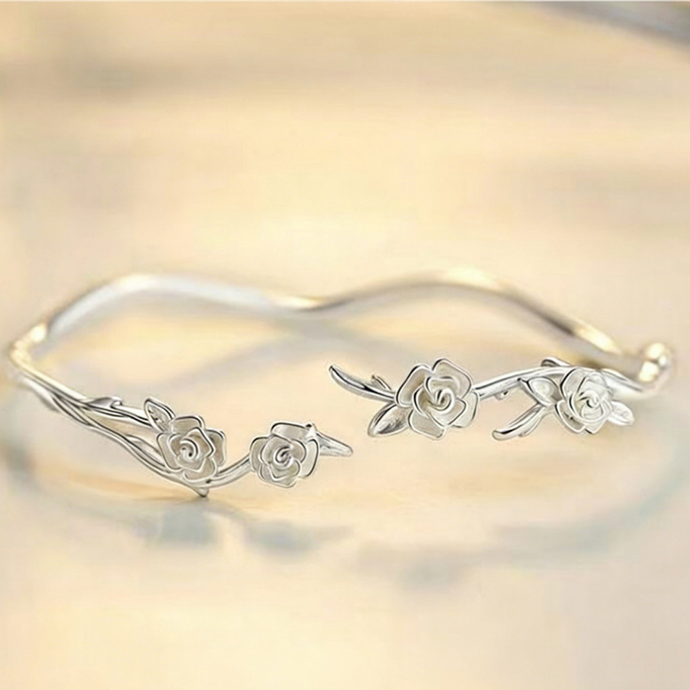 s999銀玫瑰花手鐲可調式手環輕奢款女輕奢精緻高級簡約手鍊